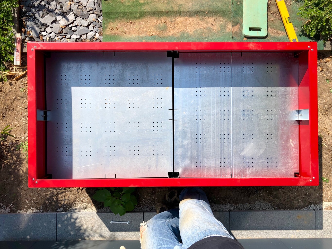 Die Bleche da rein zu bekommen, war dann nach wieder alles andere als einfach 🙄. Vielleicht wäre das insgesamt einfacher gewesen, wenn man mehr Geld ausgegeben hätte. Keine Ahnung . Aber letztlich hab ich’s dann geschafft – Tadah! Damit war mein Part fast abgeschlossen.
