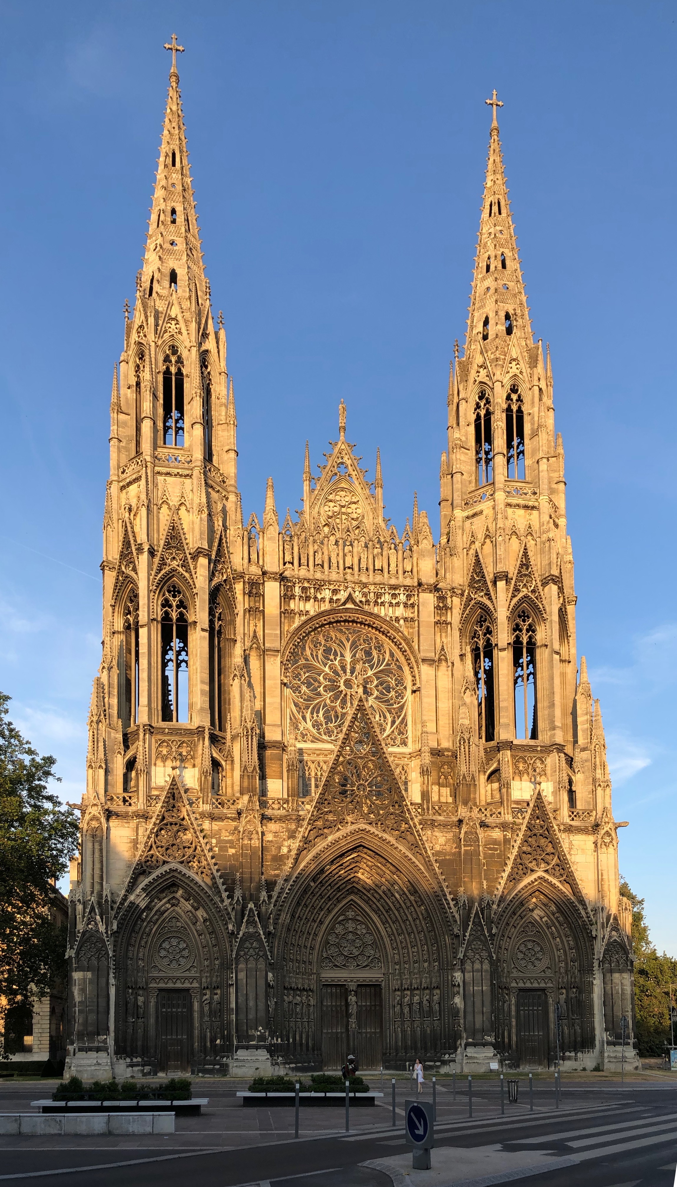 In Rouen, unserem ersten Stopp, haben wir ein Hotel am Rande der Altstadt gebucht, was schlichte, aber sehr schöne und moderne Zimmer hat – und eine Lademöglichkeit für E-Autos 👍. Nachdem die Rezeption uns gesagt hat, dass wir lediglich den Stellplatz in der Tiefgarage zahlen müssen (Pro-Tipp: In Frankreich immer private Parkplätze nehmen, wenn irgendwie möglich🙄 – nicht am Straßenrand parken 😬), fürs laden aber keine Extra Gebühren anfallen, haben wir den Wagen auf einen der beiden aussergewöhnlich breiten Stellplätze für E-Autos gestellt. Angeschlossen, alles prima und am nächsten Morgen ist der Wagen wieder voll (sprich die üblichen 90% Akkukapazität um die Batterie zu schonen).