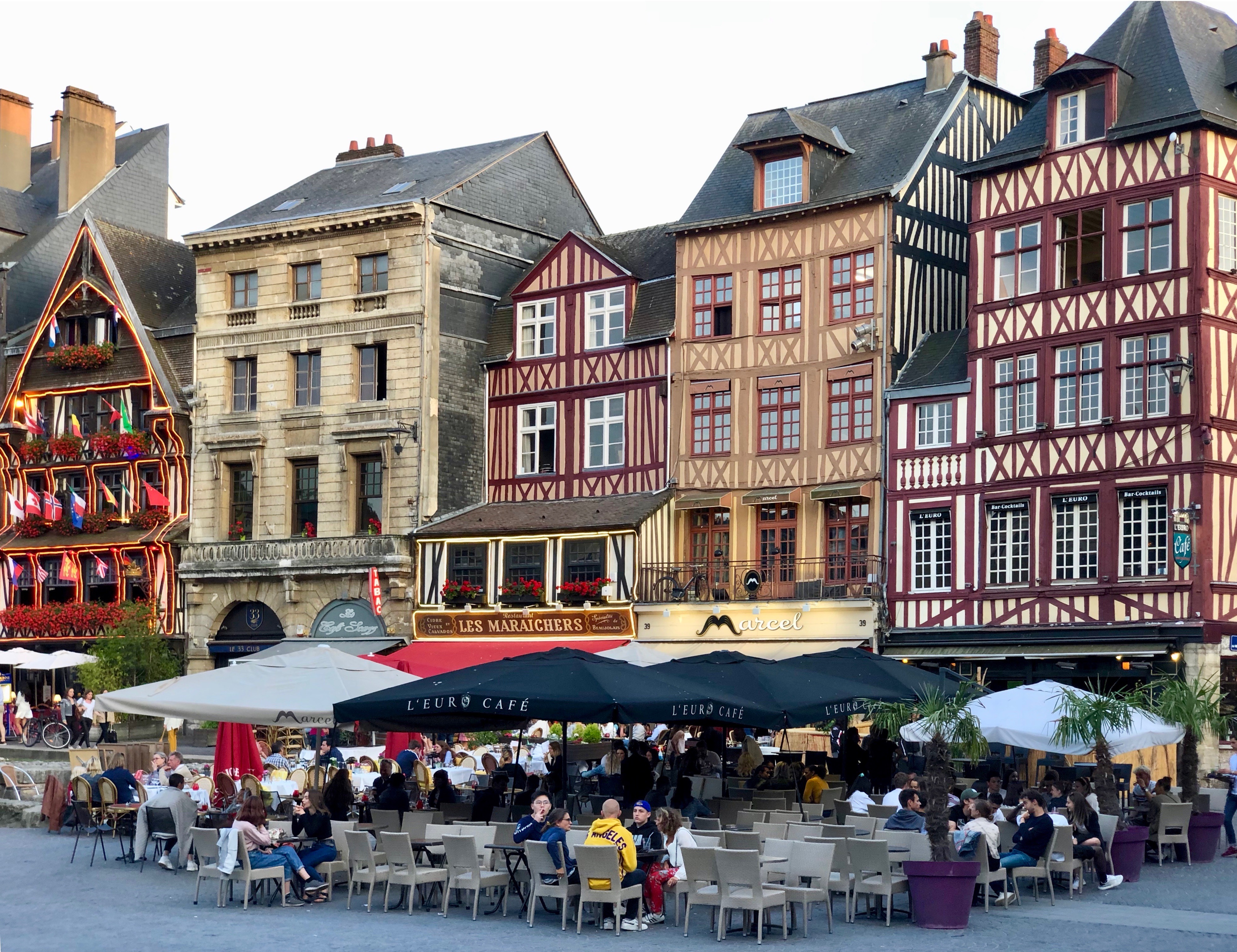 Die Stadt ist wirklich einen Besuch wert. Mittelalterliche Fachwerk-Häuser in rauen Mengen – alle sehr liebevoll gepflegt bzw. restauriert. Mehrere sehenswerte Kirchen. Überall verteilt kleine Plätze, an denen die Leute draussen sitzen und Kaffe trinken (Pro-Tipp 2: Kaffee kann der gemeine Franzose überhaupt nicht – unsere Erfahrung 😬) , sich unterhalten – oder natürlich Crepe essen 😉.