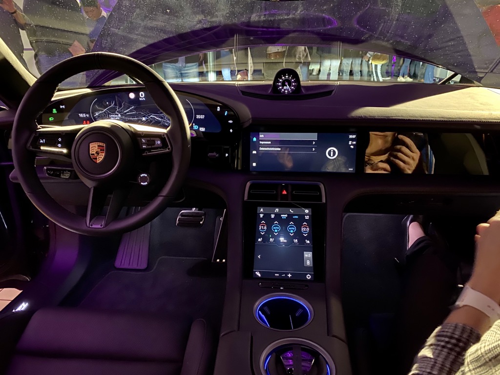Der Taycan ist gefühlt etwas größer als der aktuelle 911er – und der ist ja nun nicht gerade klein. Dadurch, und durch den Umstand, dass aufgrund des fehlenden Boxer-Motors ziemlich viel Platz im Auto ist, sind im Taycan hinten zwei wirklich vollwertige Sitze untergebracht. Im Vorfeld hat man ja öfter mal gehört, das Cockpit sei ein einziges Mäuse-Kino mit den ganzen verteilten Bildschirmen 🙄. Das kann ich nicht bestätigen. Für mein ästhetisches Empfinden ist das Cockpit sehr stimmig und angenehm. Porsche-like 👍.