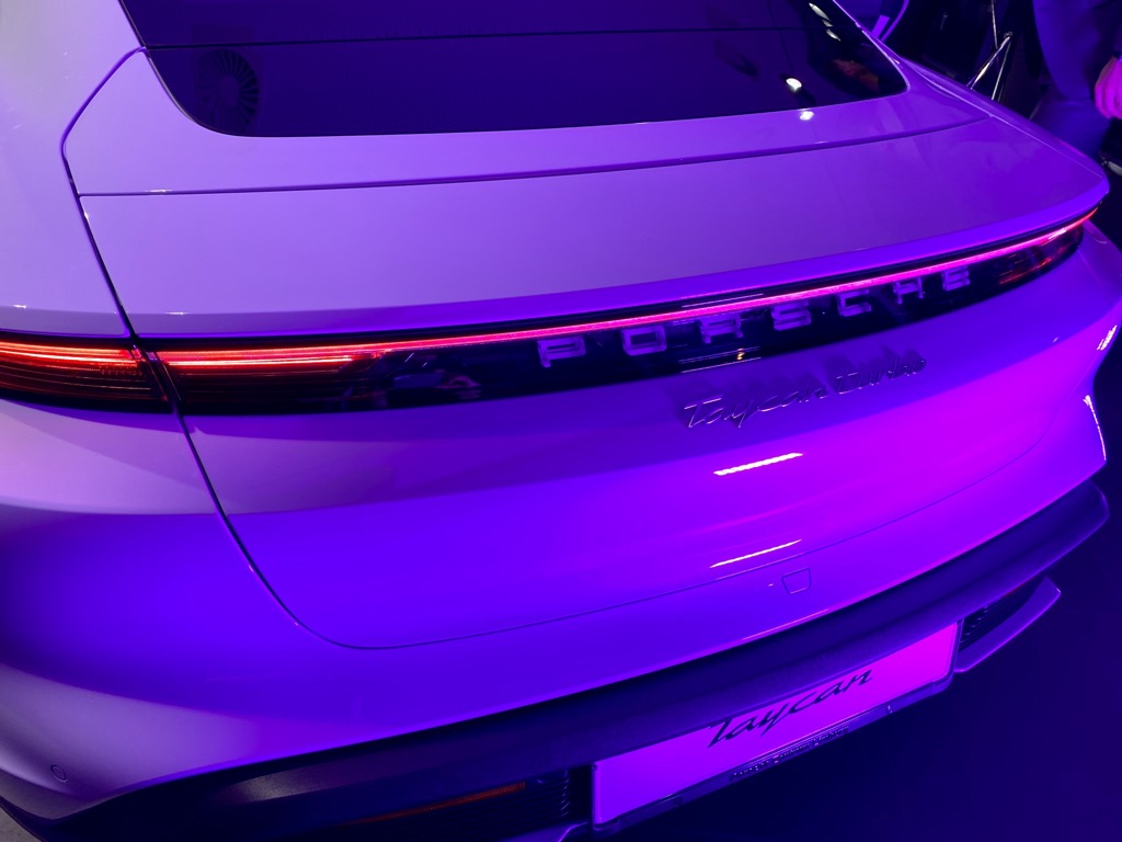 Aber kommen wir zum Wesentlichen – nach einem kurzem Film zur Einstimmung wurden dann zwei Taycan enthüllt. Ein Turbo in Weiß und ein Turbo S in einem relativ seltsamen Grau (OK, das Licht war auch irgendwie unglücklich für ein dunkles Auto 😊):