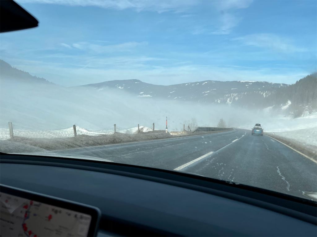 Die komplette Fahrt war es trocken und die Fahrt sehr angenehm. Bis hoch nach Obertauern (auf 1.700 Meter) waren die Straßen komplett frei.